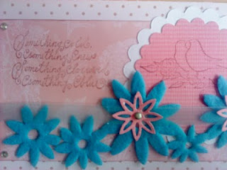 Då var det dags för ett bröllopskort. Jag gillar verkligen det avlånga formatet på kortet med massor med plats att dekorera på.
